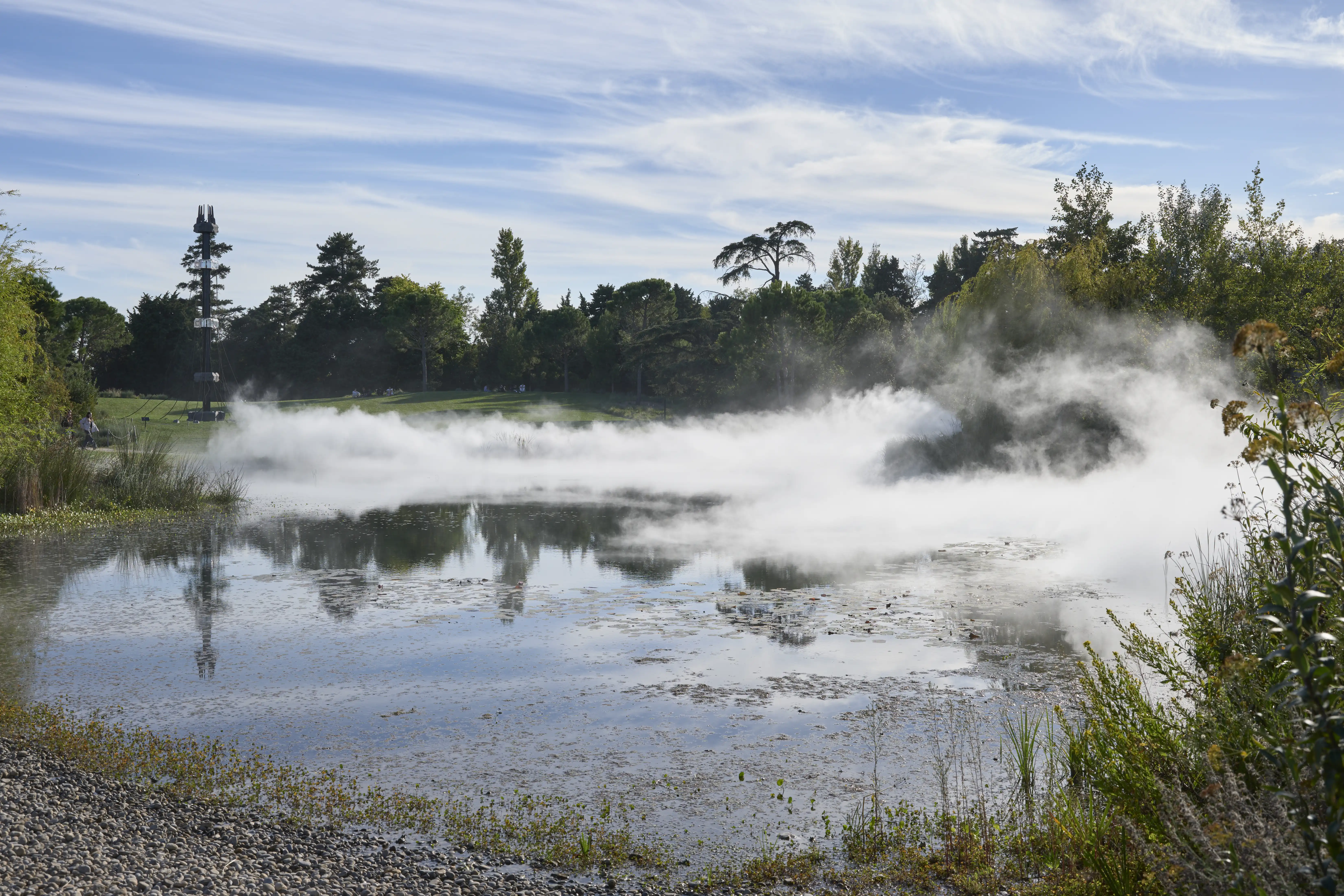 Une série d’installations de Carsten Höller, Adam Haar, Pierre Huyghe, Cildo Meireles, Federico Campagna, et Dozie Kanu cherchent à mettre en jeu les perceptions normatives du temps, de l’espace et de la réalité. Elles fonctionnent comme une invitation à la découverte et à l’imagination. Dans le parc paysager du Parc des Ateliers, autour de l’étang, les installations de Fujiko Nakaya, Precious Okoyomon et Philippe Parreno interagissent avec l’environnement, créant des expériences uniques qui répondent aux spécificités du parc.