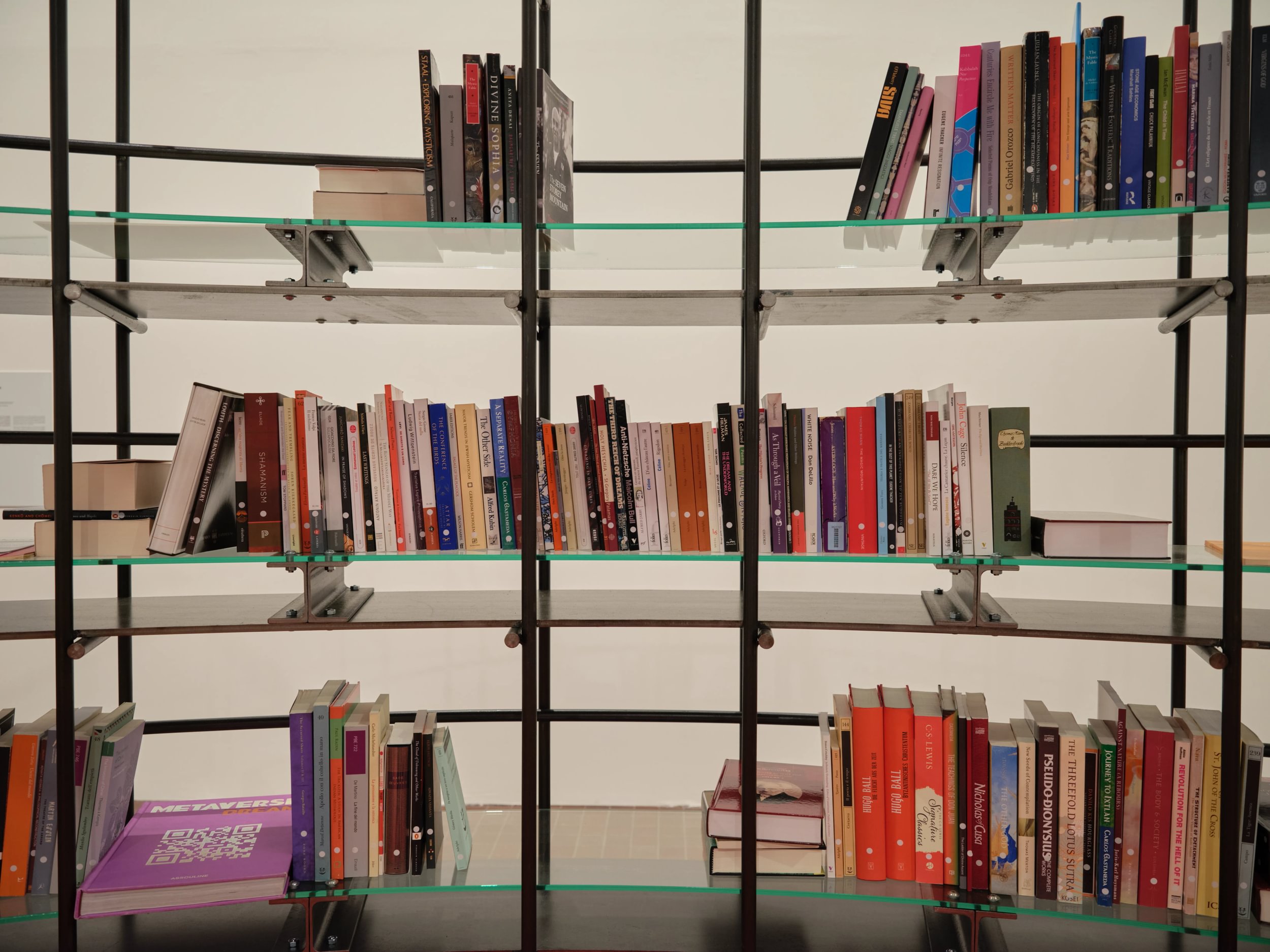 Dans le cadre de l’exposition, une bibliothèque conçue par le philosophe Federico Campagna et l’artiste Dozie Kanu est activée sous la forme d’un club de lecture. Initié avec la chercheuse Marielle Pelissero et le philosophe Fabien Vallos, il vise à engager une réflexion commune à partir des ouvrages réunis par Federico Campagna et ses collaborateur·ices.