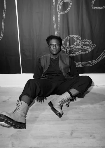 The polyphonic nature of Julianknxx’s work is indicative of his expansive practice, which is rooted in poetry but extends into performance, film, music and sculpture. Born in Freetown, Sierra Leone, Julianknxx draws on his personal experiences to broaden perspectives on the history and culture of Africa and its diasporas. Inspired by oral history traditions and working with a distinctive aesthetic approach, his films invite us to consider how we construct both local and global narratives, while reflecting on how it feels to exist in liminal spaces.