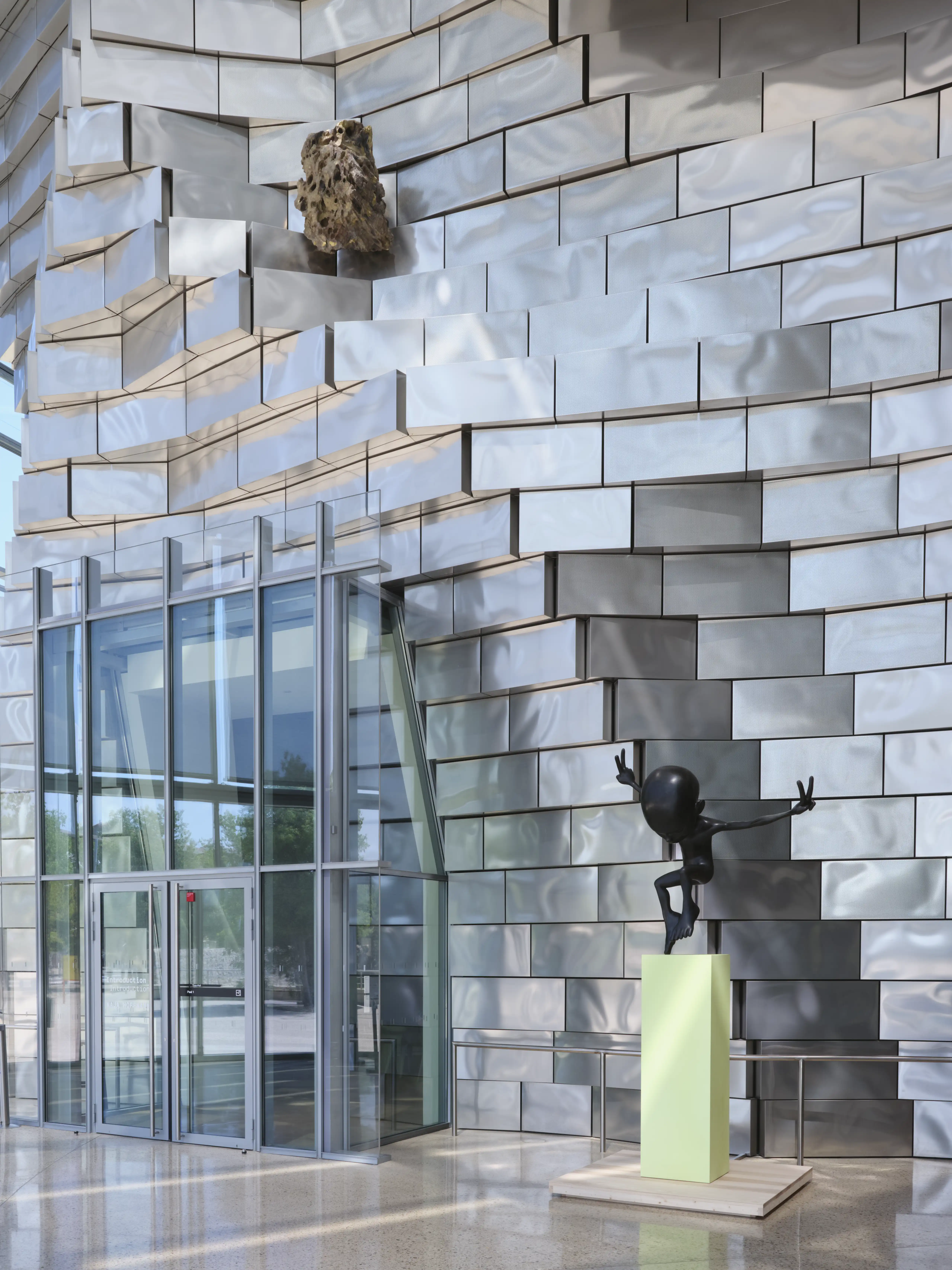 KOO often creates site-specific works that intertwine unseen forces and natural phenomena—gravity, magnetic fields, phosphorescence—with speculative ideas, uncanny imaginaries, and personal memories. Dispersed across two levels of The Tower, the exhibition includes [KANGSE SpSt] (2024), a scent-diffusing, levitating figure that greets visitors in LUMA Arles’ Drum, and a series of wooden sculptures intricately fashioned in the shape of Möbius strips. KOO’s installations at LUMA Arles also enter into dialogue with Frank Gehry’s monumental design and the history of Arles, engaging in a subtle interplay of echoes and reflections. The site-specific rock sculptures, [EVER] [VAST] (2025), resonate with the sinuous tower structure, itself inspired by the soaring rock clusters found in the nearby Alpilles Mountains, while [SEVEN STARS] (2020), a series of luminescent paintings, inevitably evokes The Starry Night (1889) by Van Gogh.