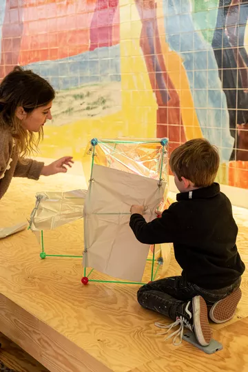 Du haut du 8e étage de La Tour, les enfants sont invités à observer la ville et ses différents bâtiments. Ensuite, dans la peau de petits bâtisseurs à leur tour d’imaginer une construction à venir insérer dans une ville du futur collaborative.