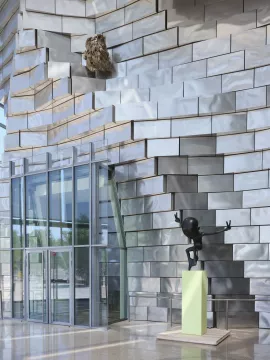 KOO JEONG A réalise fréquemment des œuvres in situ qui associent forces invisibles et phénomènes naturels – gravité, champs magnétiques, phosphorescence – à des idées spéculatives, des imaginaires étranges et des souvenirs intimes. Déployée sur deux niveaux de La Tour, l’exposition comprend [KANGSE SpSt] (2024), une figure en lévitation diffusant des odeurs qui nous accueille dans le Drum de LUMA Arles, et une série de sculptures en bois finement façonnées selon la logique du ruban de Möbius. Les installations dialoguent avec l’esthétique monumentale de Frank Gehry et l’histoire d’Arles, donnant lieu à un jeu subtil d’échos et de reflets. Les sculptures rocheuses in situ [EVER] [VAST] (2025) résonnent avec la structure sinueuse de La Tour, elle-même inspirée par les amas de rochers élancés des Alpilles voisines. [SEVEN STARS] (2020), une série de peintures luminescentes, évoque quant à elle inévitablement La Nuit étoilée (1889) de Van Gogh.