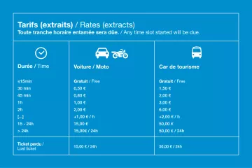 Pensez à conserver votre ticket de parking. Si vous l'égarez, il vous sera demandé de régler le montant de stationnement d'une journée complète (15€).